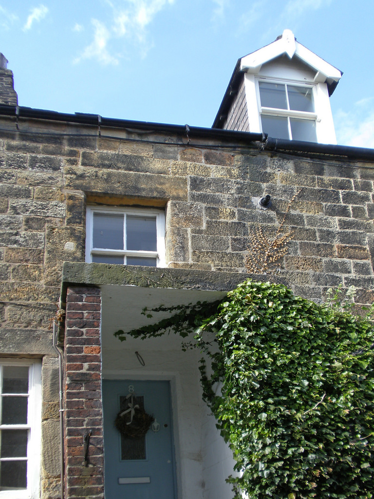 Most of the village was designated as a conservation area in 1972 - areas of recent building in the north are excluded. The architecture of the town is a mix of a few 17th century structures with 18th and 19th century buildings, ranging from terraced cottages to spacious Victorian villas, some flamboyant in style; 31 are Grade II listed. South of the river, a roofless 1870s mortuary chapel and the remains of a concrete cottage stand on the south-west of Church Hill. Further south, the first edition Ordnance Survey map of the area shows a bathhouse on Buston links associated with 'sandpits' - apparently bathing holes - drilled into the outcropping stone on the beach, and presumably evidence of the Victorian Spa movement.