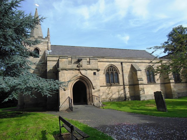- "Parish church. 1790 rebuilding of medieval church; 1842 repairs; 1873-5 repairs and additions. Sandstone ashlar with plinth; Welsh slate roof with stone gable copings; stone spire. Perpendicular style. West tower; …