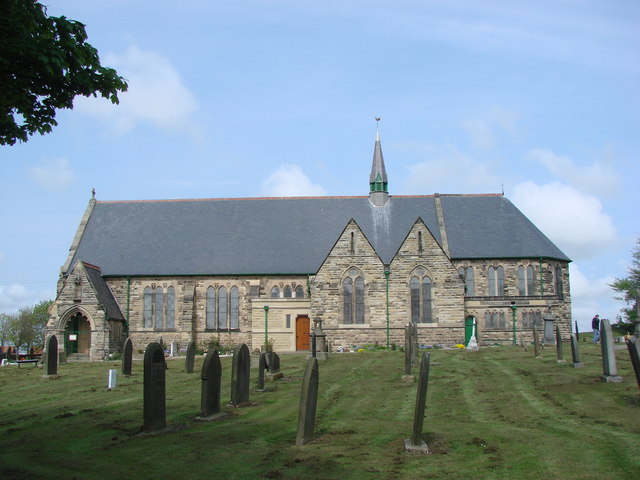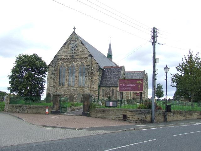 - "Parish church. 1885-6 by Oliver and Leeson of Newcastle; porch 1888. Rock- faced sandstone; Welsh slate roof. Nave with south porch, north and south double transepts, apsed chancel. Early English …