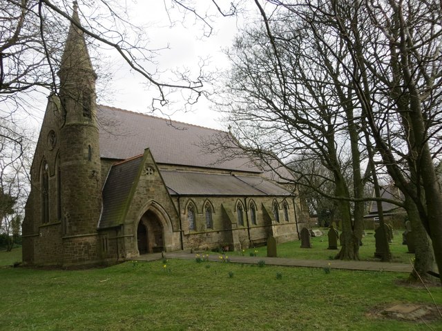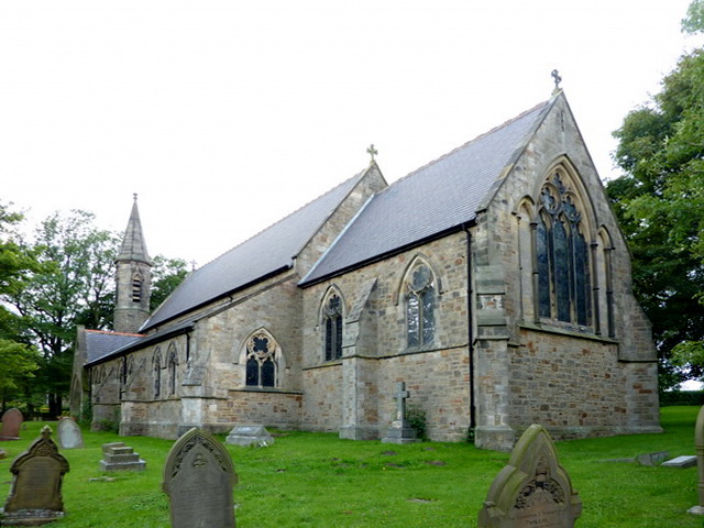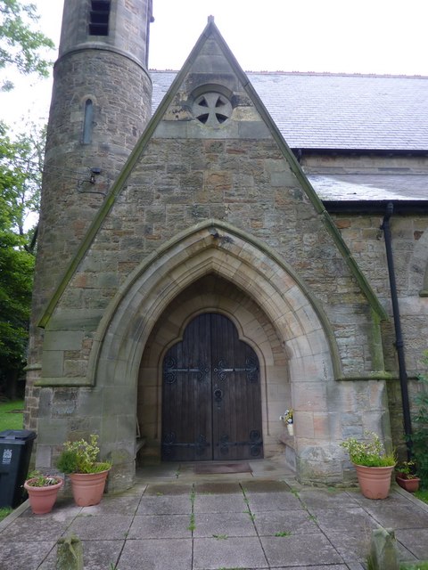 - "Parish church. 1879. Snecked sandstone with ashlar dressings; Welsh slate roof with red ridge tiles and stone gable copings. Nave with south-west tower and south aisle, the westernmost bay a …