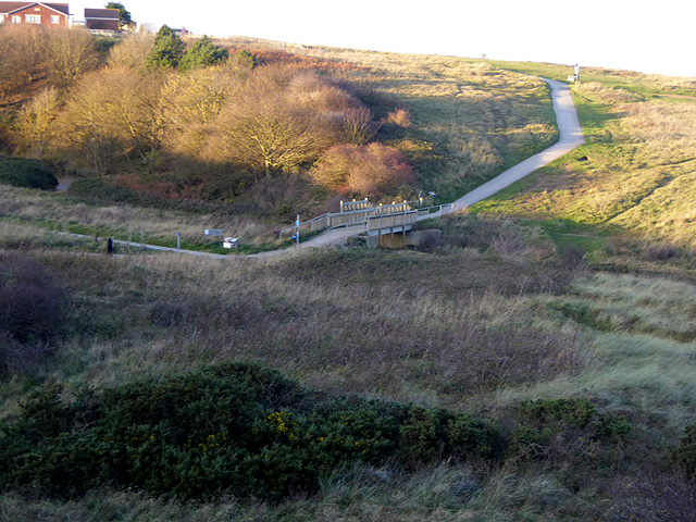 Crimdon Beck is a stream in County Durham which runs through Crimdon Dene and discharges into the sea near Crimdon. It is a 'misfit' stream - much smaller than the wide valley, which is a limestone gorge, carved by the water from melting ice at the end of the last ice age.[1] Layers of glacial clay, sand and gravel were deposited in the valley at this time. Crimdon Dene is a nature reserve and is spanned by the Crimdon Dene Railway Viaduct.