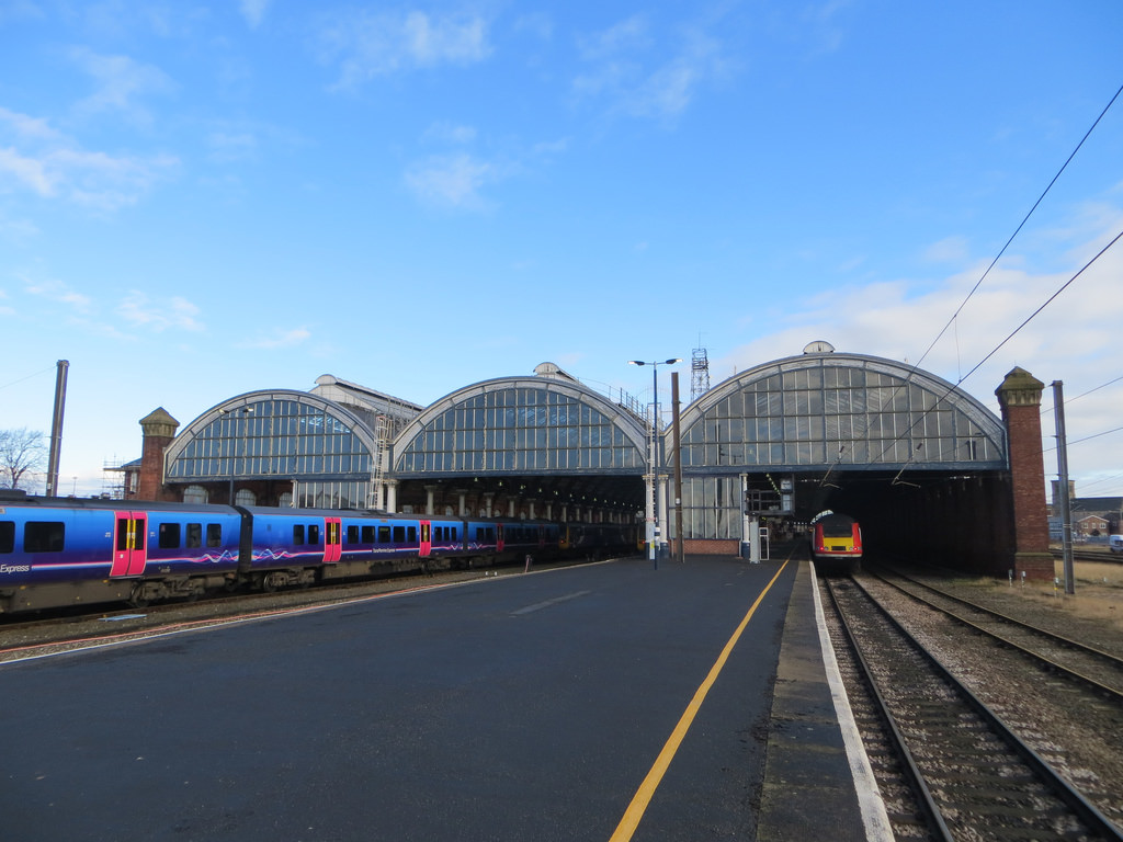- Platform 1: This is the main southbound platform, with, in order of frequency, London North Eastern Railway services to York and London King's Cross, CrossCountry services to Reading and Southampton or Birmingham and Plymouth, via York and Leeds, TransPennine Express services to Manchester Piccadilly and Manchester Airport or Liverpool Lime Street, via York and Leeds, and Northern services to Saltburn via Middlesbrough, from Bishop Auckland.