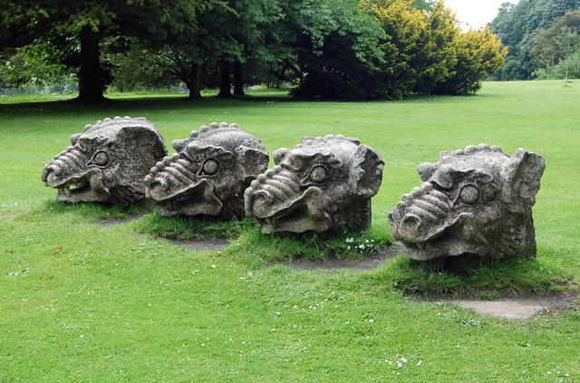 - "Group of 4 carved dragons' heads, probably C16. Limestone. Grotesque style with oriental influence. Brought 1760 from Bishopsgate, London, as ballast in one of Sir Walter Blackett's colliers; moved to …
