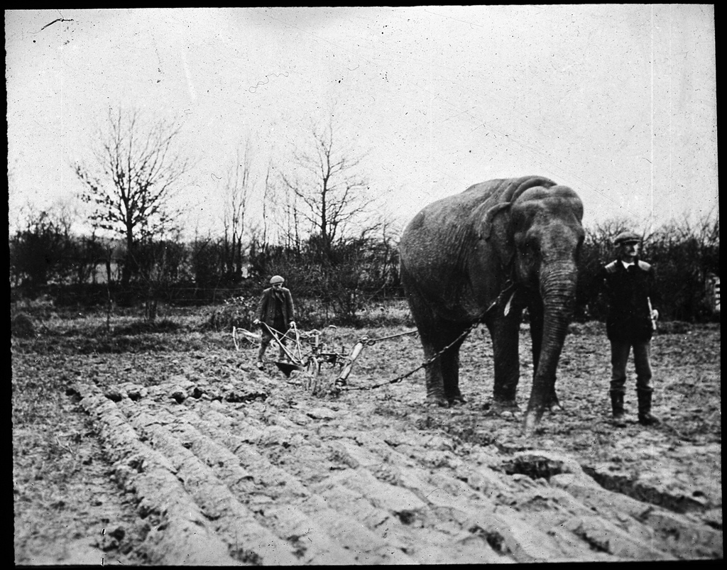Elephant ploughing a field