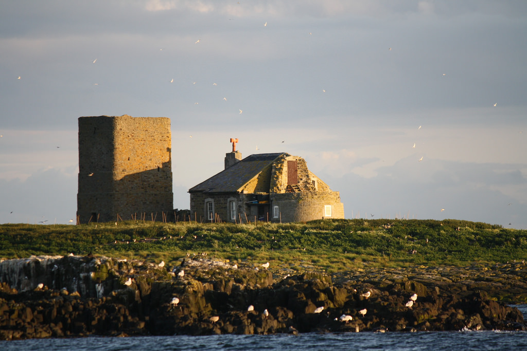 The islands have no permanent population, the only residents being National Trust Assistant Rangers during part of the year: they live in the old pele tower on the Inner Farne (the largest and closest inshore of the islands), and the lighthouse cottage on the Brownsman in the outer group. The pele tower was built c.1500, by or for Thomas Castell, Prior of Durham.