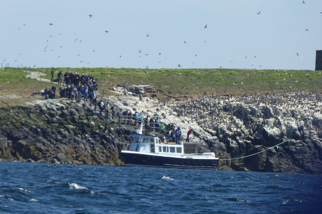 In the warmer months the Farnes, an important wildlife habitat, are much-visited by boat trips from Seahouses. Local boats are licensed to land passengers on Inner Farne, Staple Island and the Longstone; landing on other islands is prohibited to protect the wildlife. At the right time of year, many puffins can be seen and these are very popular with visitors; on the Inner Farne, the Arctic terns nest close to the path and will attack visitors who come too close (visitors are strongly advised to wear hats). Some of the islands also support a population of rabbits, which were introduced as a source of meat and have since gone wild. The rabbit and puffin populations use the same burrows at different times, the puffins being strong enough (with a vicious bite) to evict the rabbits from the burrows during the nesting season. The islands also hold a notable colony of about 6,000 grey seals, with several hundred pups born every year in September–November.
