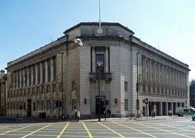 - "1931. Has a corner entrance. Built in Portland stone. Has a large main doorway and giant columns along Market Street and Pilgrim Street with mythical beasts. This is the third …