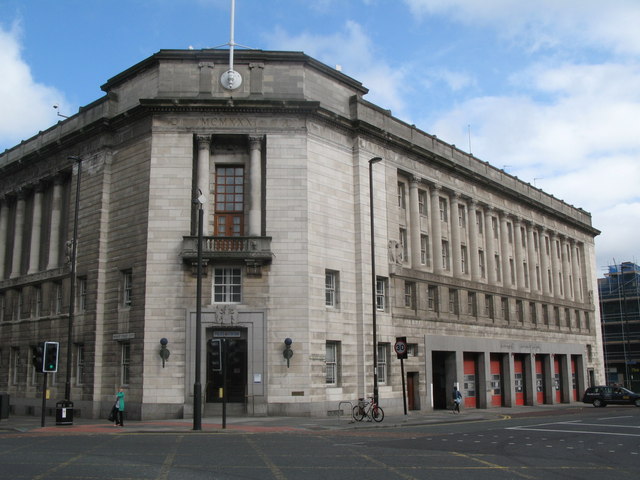 The former Central Police, Fire Station and Magistrate's Court on the corner of Pilgrim Street and Market Street, in Newcastle, was built in 1931- 1933. Built with Portland stone columns, the building was designed by Cackett, Burns Dick & Mackellar.[1] The building is Grade II listed on the National Heritage List for England. It was the third Police Station to be located on this site since 1840.[2] Northumbria Police moved to their building on Forth Banks in November 2014.[3]