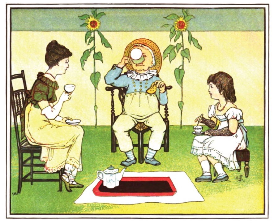 - Public domain image from Afternoon Tea: Rhymes for Children. by J. G. Sowerby and H. H. Emmerson. London: Frederick Warne & Co., 1880.