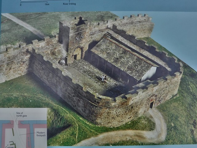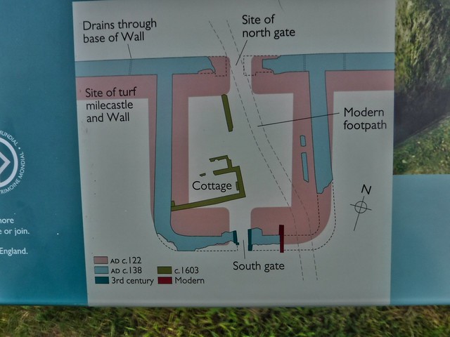 There are thought to have been 80 milecastles on Hadrian’s Wall, located every Roman mile (1,000 paces) along the Wall, with two turrets (observation towers) spaced every third of a mile between them. The Milecastles were rectangular forts manned by small garrisons (probably 10-30 soldiers). The milecastles significance was much more than just their role in defending the Roman frontier. The milecastles had gateways in the north and south walls, often with towers on the north gate. They controlled passage through the Wall, supporting the checking of movement and levying taxes (customs) on goods and people. The milecastles also provided a visible symbol of Roman authority and imperial control. After Hadrian’s Wall was initially built (AD 122-8), larger forts (such as Housesteads) were added to the wall, providing bigger bases for fighting units, suggesting a shift in Roman strategy. In the 1930s a numbering system was devised, with the Milecastles numbered east to west.