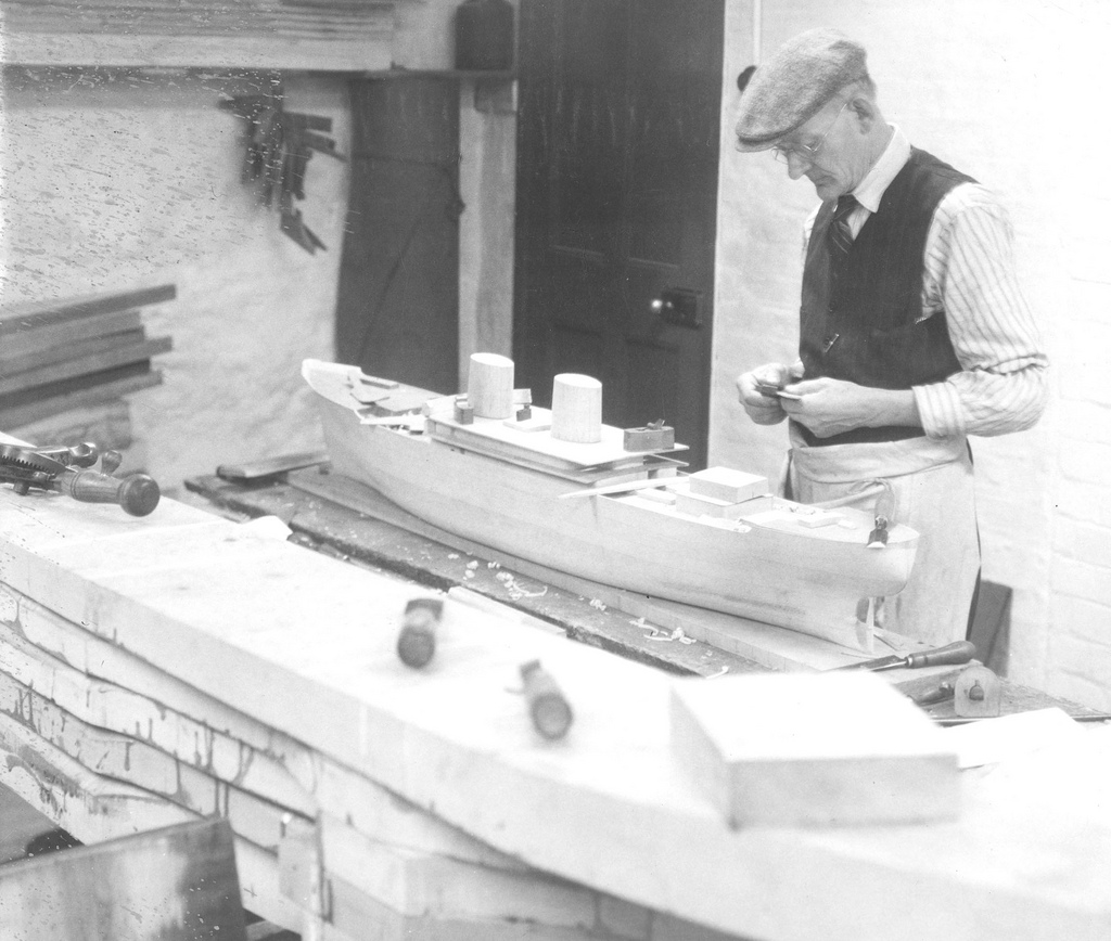 An apprentice heating rivets at J.L. Thompson & Sons Ltd
