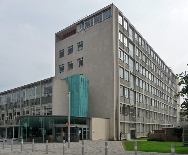 The Sutherland Building, formerly the Medical School of Durham University, which was a naval warehouse during World War II, and the Dental School of Durham University (1945–78) is the home of Administrative Departments including Finance & Planning and Human Resources, using the space vacated when the School of Law moved to City Campus East.