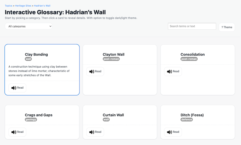 Diagram showing features of Hadrian's Wall. North to south, this includes Upcast Mound, Counterscarp, Wall Ditch, Berm, Wall, Military Way, Vallum (north mound, vallum ditch, south mound). Not to scale. -