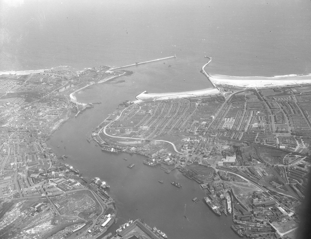 This is an Aerial view of South Shields, May 1949. Reference: DT.TUR/2/2911E This photograph is part of a set that has been created to celebrate the opening of South Tyneside Council’s new leisure centre, Haven Point, on 28 October. It focuses in particular on life along the foreshore at South Shields during the 1950s but also includes a few images from further down the coast. South Shields has long been a popular seaside resort and also has a proud industrial heritage. Times have changed, though, and many of the old industries such as shipbuilding and coal mining have disappeared. Rather than stand still and accept this change in fortunes, South Tyneside Council is pressing ahead with an ambitious vision to transform the Foreshore, Town Centre and Riverside areas into vibrant destinations. Haven Point is a key part of this change. Tyne & Wear Archives and South Tyneside Local Studies Library have a vital role to play in this. As South Shields is regenerated and forever changed the Archives and Local Studies serve as its memory. We keep alive a window into the town’s past, preserving the history of people, places and industries that no longer exist. South Shields must look forward but its sense of direction will be lost if it forgets where it came from. These images, together with a fantastic selection from South Tyneside Local Studies Library, can be seen in a digital exhibition at Haven Point. You can also see images from the Local Studies Library online at http://www.southtynesideimages.org.uk/" >www.southtynesideimages.org.uk/. A Blog on this collection of images can be read http://www.twmuseums.org.uk/engage/blog/south-shields-foreshore-preserving-the-memories/" >here (Copyright) We're happy for you to share these digital images within the spirit of The Commons. Please cite 'Tyne & Wear Archives & Museums' when reusing. Certain restrictions on high quality reproductions and commercial use of the original physical version apply though; if you're unsure please email archives@twmuseums.org.uk -