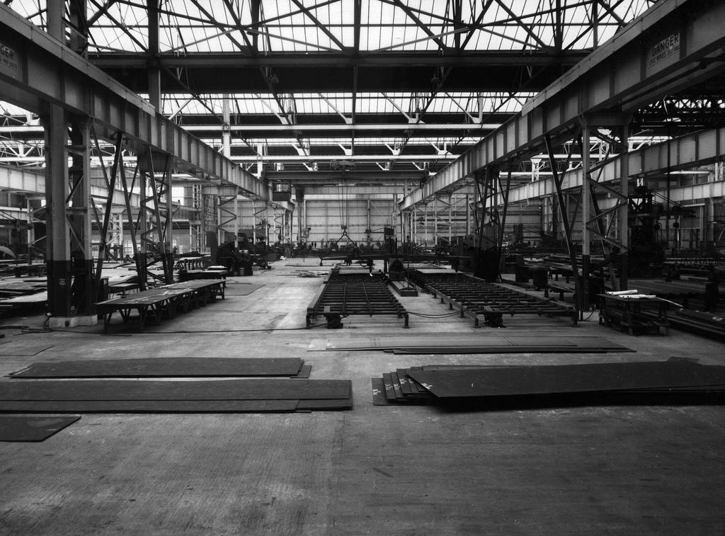 This photograph, taken in the Hawthorn Leslie yard, Hebburn shows the Monopol Bay in the Preparation Shed (looking North), Sept 1960. Reference: 2931-43-09 This image is taken from an album produced by the world famous shipbuilding and engineering firm of Hawthorn Leslie. The album gives us a fascinating glimpse of life at the company's shipyard at Hebburn from the late 1930s to the 1960s. There are remarkable images of the men at work in the yard and a poignant series showing the terrible damage caused during the Second World War to HMS Kelly, one of Hawthorn Leslie's best loved ships. This particular collection of images follows the Birth and ultimate Death of a ship. From the craft and pride in its production and the joy in its performance, to the devastation and price of its destruction. A blog about this fascinating collection can been viewed http://www.twmuseums.org.uk/engage/blog/hms-kelly-commemorating-the-men-who-built-her-and-served-on-her/" >here on the Tyne & Wear Archives & Museums website. (Copyright) We're happy for you to share these digital images within the spirit of The Commons. Please cite 'Tyne & Wear Archives & Museums' when reusing. Certain restrictions on high quality reproductions and commercial use of the original physical version apply though; if you're unsure please email archives@twmuseums.org.uk -