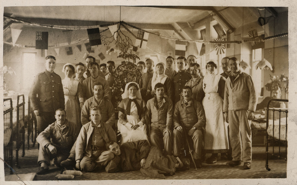 This photograph shows a view of patients and staff of Ward 26, 3rd Northern General Hospital, Sheffield. The photograph was taken at some time in December 1916 and documents the Christmas Celebrations for the patients. Reference: DF.BGS-4-6-2 This set offers a rare and intimate glimpse in to the Life of a Wounded Soldier recovering from the horrors of World War One. This particular set of photographs is taken from a collection held at Tyne & Wear Archives capturing the every day lives of the nurses and patients at the 3rd Northern General Hospital, Sheffield and Longshaw Lodge Convalescent Home for Wounded Soldiers, Grindleford, near Sheffield. The photographs were taken between August 1916 and June 1917. A blog about this fascinating collection can been viewed here on the Tyne & Wear Archives & Museums website. (Copyright) We're happy for you to share these digital images within the spirit of The Commons. Please cite 'Tyne & Wear Archives & Museums' when reusing. Certain restrictions on high quality reproductions and commercial use of the original physical version apply though; if you're unsure please email archives@twmuseums.org.uk -