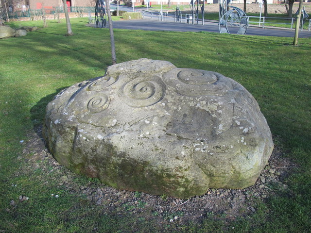 "Ancient cup-and-ring stones "are ostensibly non-linear carved designs on outcrops of rock or solitary boulders. British examples originate from the neolithic period (some may be even older). Their central features are small rounded cup-markings, circles, semi-circles, curved lines, straight-ish lines, and double- & multiple-rings, all in usually abstract design-forms". For further info, see The Northern Antiquarian website https://megalithix.wordpress.com/sites/cup-ring-stones/ . The Keys to the Past website lists over 300 examples of cup and ring rocks in County Durham and Northumberland http://www.keystothepast.info/Pages/pgResult.aspx?SEARCH=cup+and+ring . Many of these have been photographed by Andrew Curtis http://www.geograph.org.uk/search.php?i=54803597 ." Photo by Mike Quinn, 2015. -