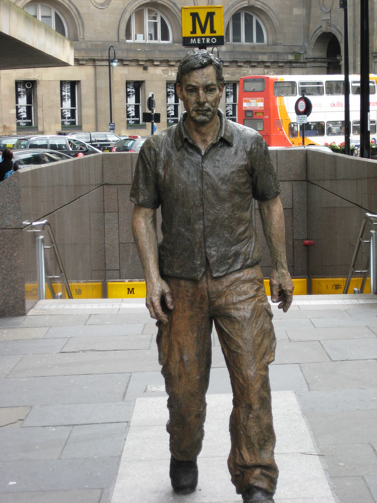 Newcastle: a statue opposite Central Station and clearly reflecting male exits from the fine new Metro -