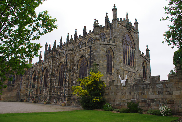 "Originally built in the 12th century as a banqueting hall. The clerestory was added in the 17th century. It was consecrated in 1665." Photo by Ian Taylor, 2013. -