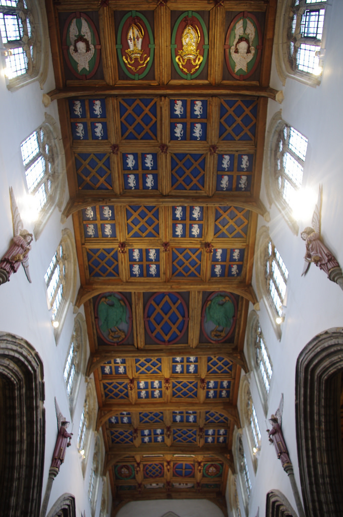 Bishop Auckland. Auckland Castle. St. Peter's Chapel. Originally the banqueting hall of the castle - built in the 12th century with external buttresses added in the 13th. The original chapel was demolished in c. 1650 and the banqueting hall was converted into the chapel, consecrated in 1665. -