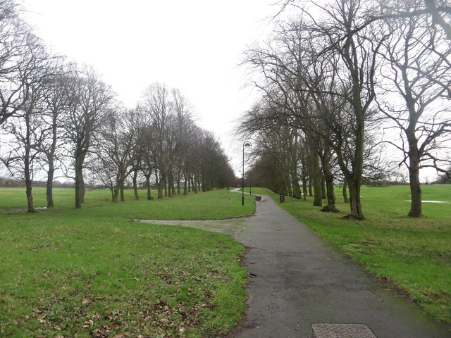 "Looking along a footpath which follows an alignment between an avenue of mature trees between Grandstand Road and Ponteland Road." Photo by Graham Robson, 2016. -