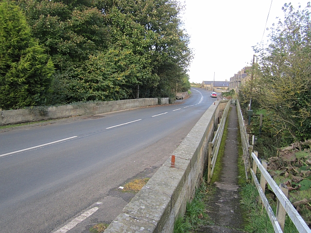 "The bridge carries the old A1 over the Waren Burn." Photo by Richard Webb, 2012. -