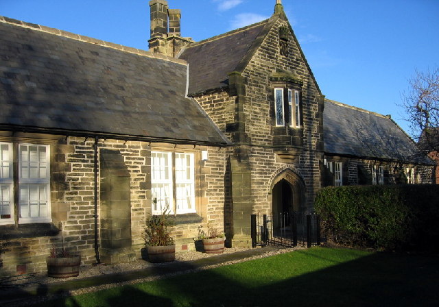 "This is the school mentioned under 'Netherton Hall' in [[NZ2381]] The crest in the gable above the oriel window is that of the Earl of Carlisle." Photo by Alan Fearon, 2005. -