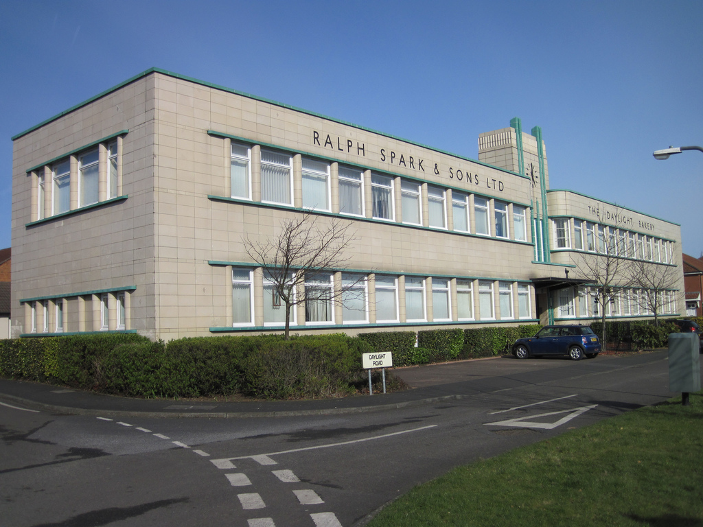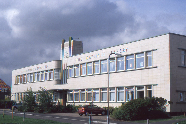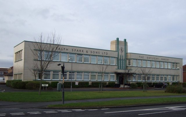 Spark's Daylight Bakery on Bishopton Avenue in Stockton-on-Tees was built in 1938. The Art Deco style building by Kitching & Co. of Middlesbrough was built for Ralph Spark & Sons. Ltd. It incorporated a bakers and company offices. Hot air from the bakery was used to heat the rest of the building through special ducts.[1] The bakery closed in 1985. Most of the bakery at the rear of the building was demolished, but the art deco offices were later converted to residential apartments. The building is Grade II listed on the National Heritage List for England.