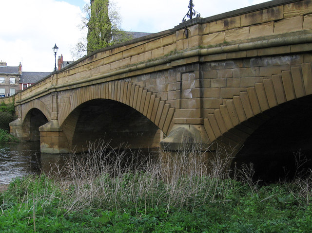 - "Bridge. 1829-31. By Thomas Telford. Ashlar. Three broad segmental arches with rusticated voussoirs and broad splays at the springing which die away to nothing at the crown. Triangular cutwaters topped …