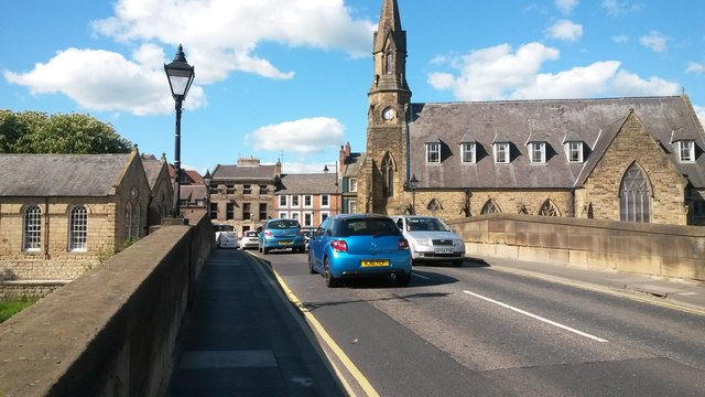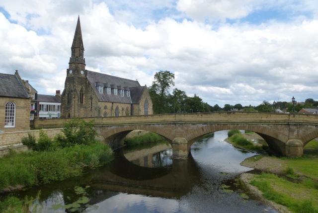 The A192 crosses the River Wansbeck with Morpeth Church in the background