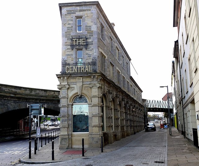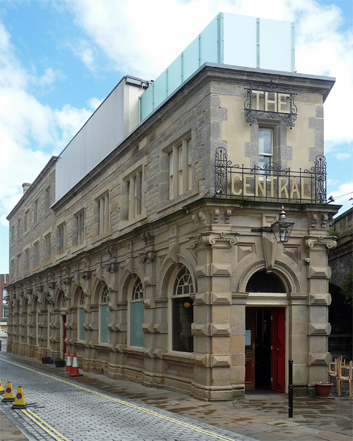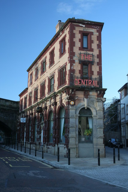 The Central is a public house on Half Moon Lane and Hills Street in Gateshead. It was built in 1856, designed by M. Thompson for Alderman Potts, wine merchant, as business premises. It became a hotel circa 1890.[1] The Central is Grade II listed on the National Heritage List for England. The pub is affectionately nicknamed “The Coffin”, because of its unusual shape. Following a period of decline the pub was purchased by The Head of Steam pub chain in October 2009, and underwent a major restoration[2], with the addition of a rooftop bar.