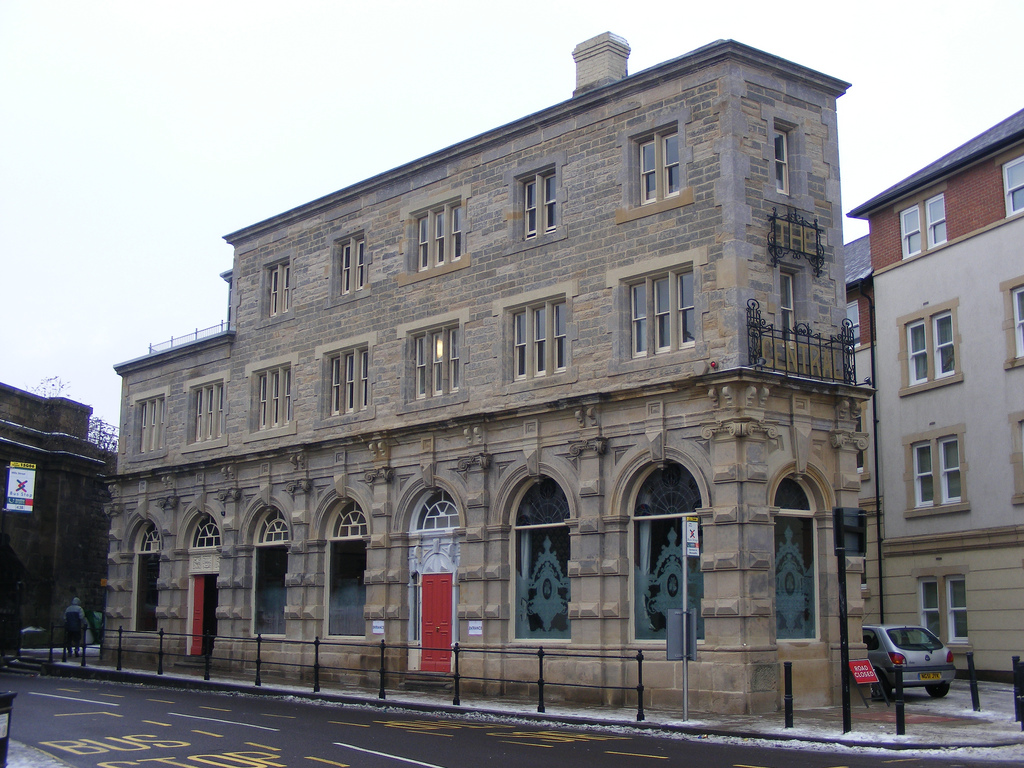 - " 1854 by M Thompson. The building occupies a flattened triangular island site. Coursed stone with ashlar dressings. Low pitched Welsh slate roof with corniced stone stacks. Three storeys at …