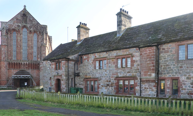 The Vicarage at Lanercost Priory incorporates the former Guest House of the Outer Court of the priory. The building dates from the early 13th century with additions of mid-16th, and alterations in the early 19th century. It was constructed using calciferous and red sandstone from the nearby Roman Wall. The building is Grade I listed on the National Heritage List for England.