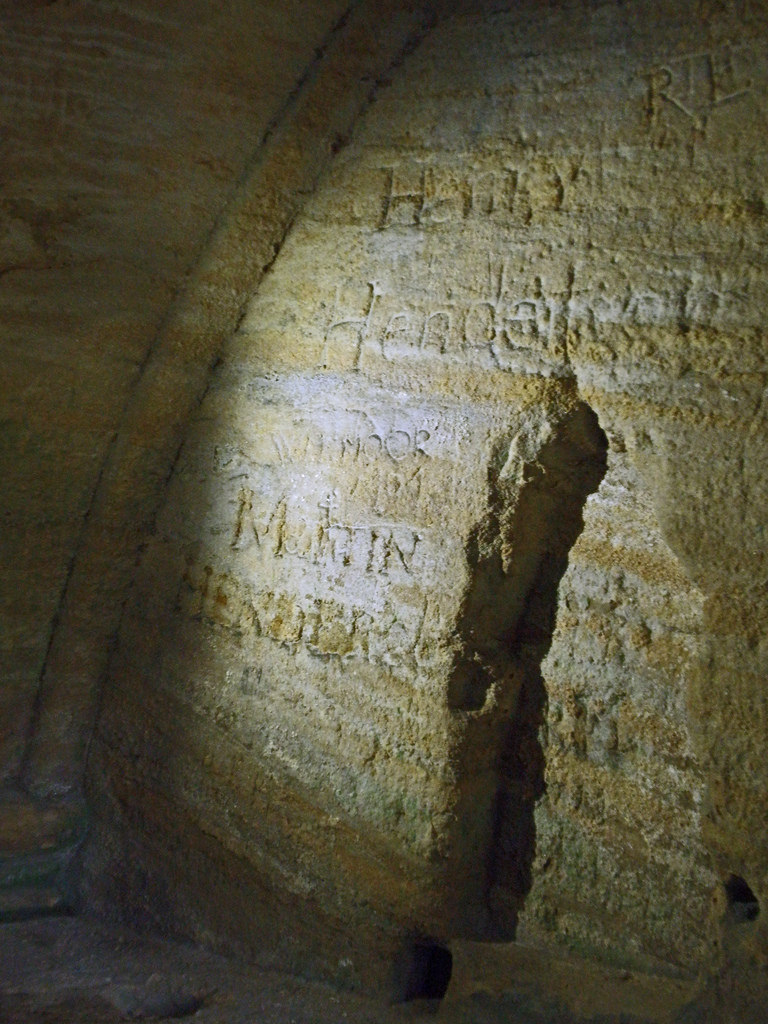 The Hermitage consists of an outer portion built of stone, and an inner portion hewn from the steep rock above the river. This inner part comprises a chapel and a smaller chamber, both having altars. There is an altar-tomb with a female effigy in the chapel.
