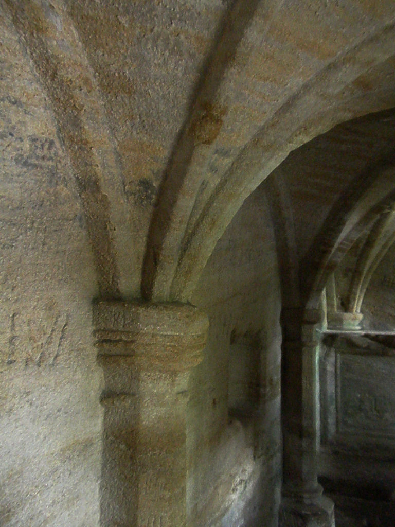 - "Hermitage. Mid-C14, enlarged late C14 or early C15. Original part cut in natural sandstone cliff; later parts squared stone with cut dressings. Plan: 3-bay chapel with parallel sacristy to rear …